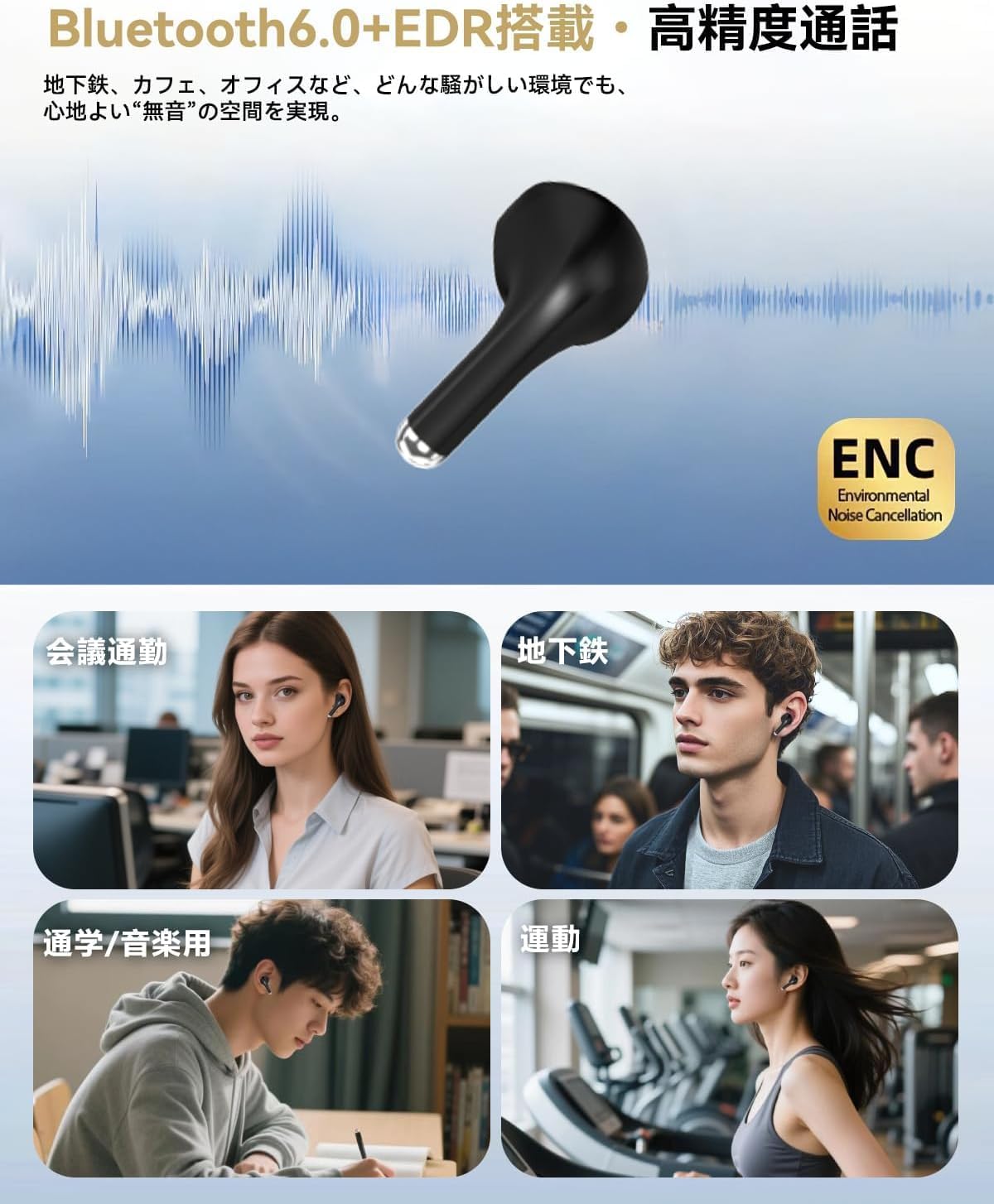 1位:Bluetoothイヤホン ワイヤレスイヤホン IPX7防水 最大60時間再生 2026年最新Bluetooth6.0ブルートゥースイヤホン 全音域HIFI音質低遅延接続瞬時 片耳/両耳 WEB会議/運動/ゲーム/通学通勤/スポーツ/音楽用iPhone/Android対応 (white)