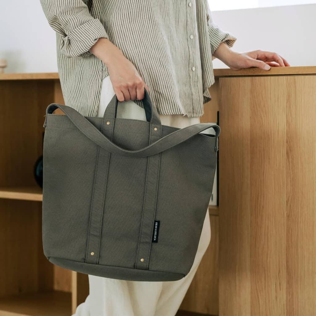 DEAN&DELUCA(ディーン&デルーカ)の「トートバッグ」が人気を集めています。ハンドルとショルダーベルトがついた2WAYタイプで、ノートパソコンも入る大きめサイズ。シンプルなデザインなので、性別問わず使うことができます。