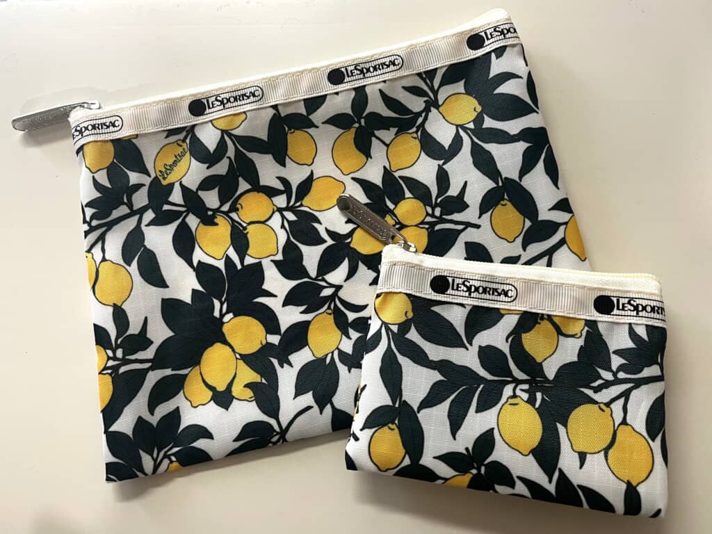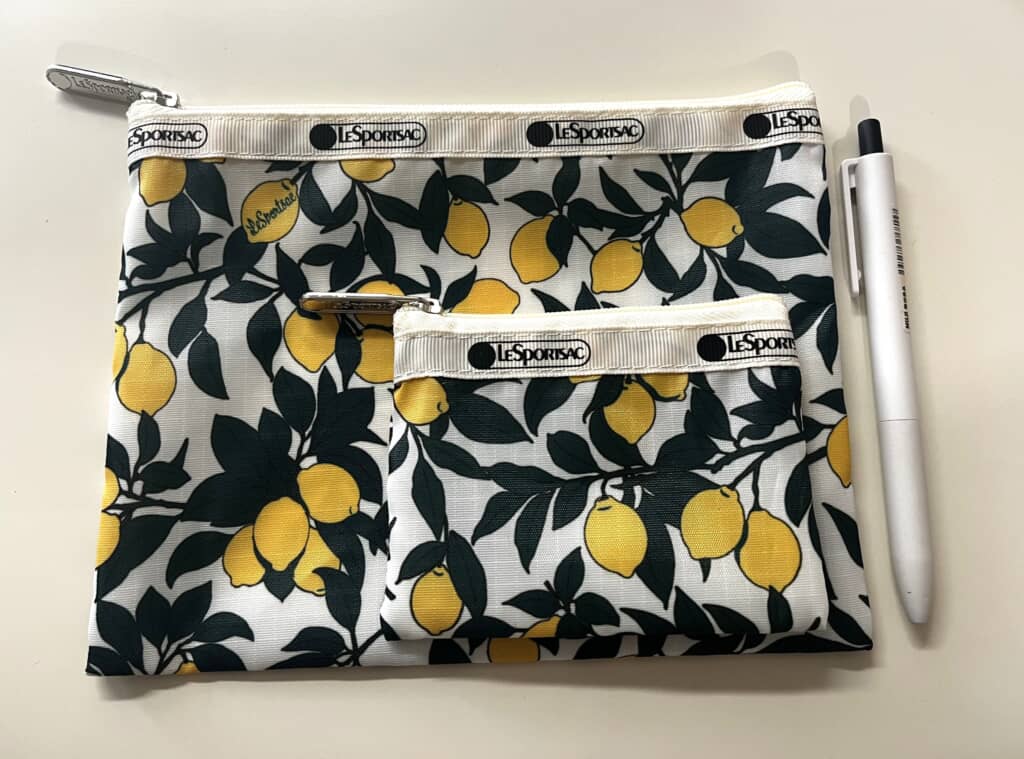 そんなLeSportsacと雑誌のLEEがコラボした「レモン柄ポーチセット」は、爽やかなレモン柄が印象的なポーチの大小2個セット。大は縦15×横20センチでコスメやガジェット収納に、小は縦8×横11センチでアクセサリーや小物整理に便利なサイズ感です。薄手で軽量なため持ち運びやすく、旅行用ポーチとしても活躍してくれるでしょう。