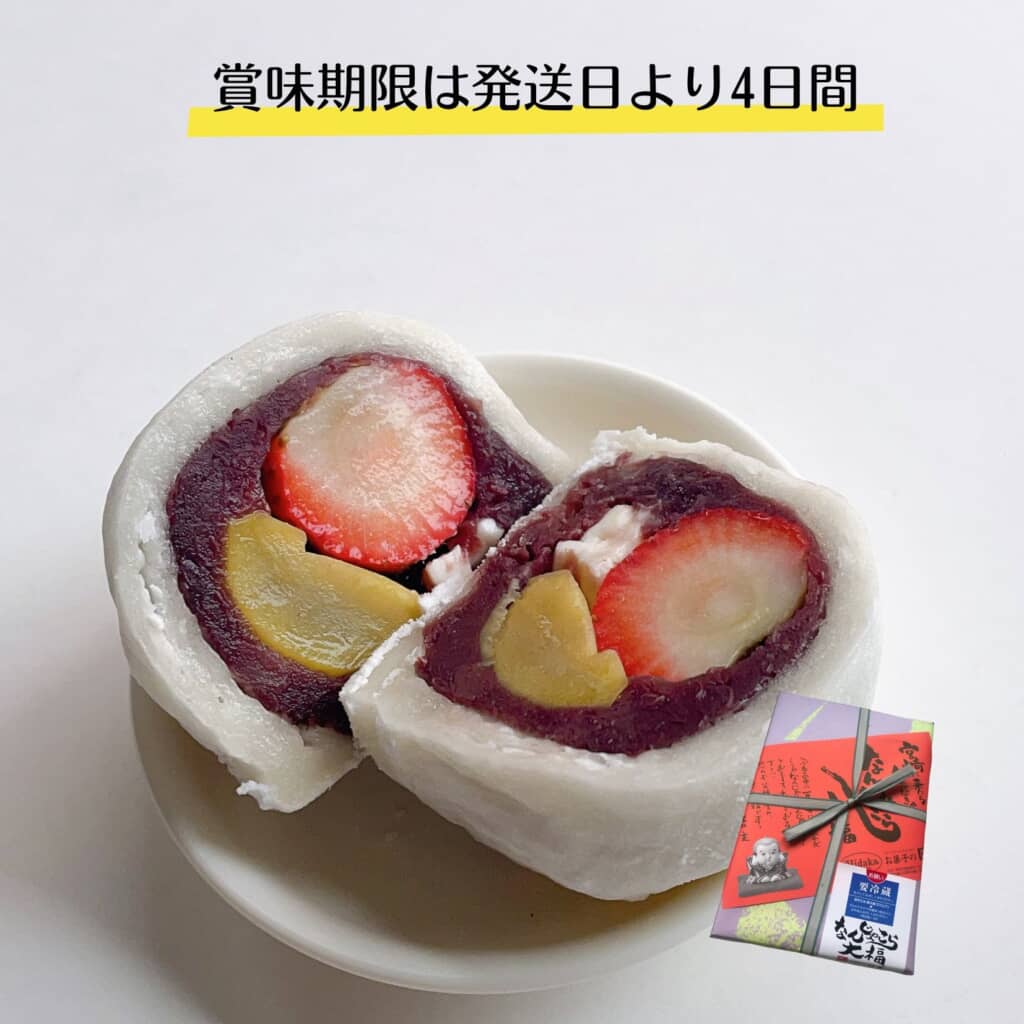 そんな同店のロングセラー商品の一つが「なんじゃこら大福」。こぶしほどの大きさの大福の中に、いちご、栗、クリームチーズが入った一品です。友人に試食してもらった際の第一声が「なんじゃこらー!!!」だったことから「なんじゃこら大福」と名前が付けられたのだとか。中の具材と外側のやわらかな求肥が絶妙にマッチし、大きな大福を口いっぱいにほおばって楽しめます。