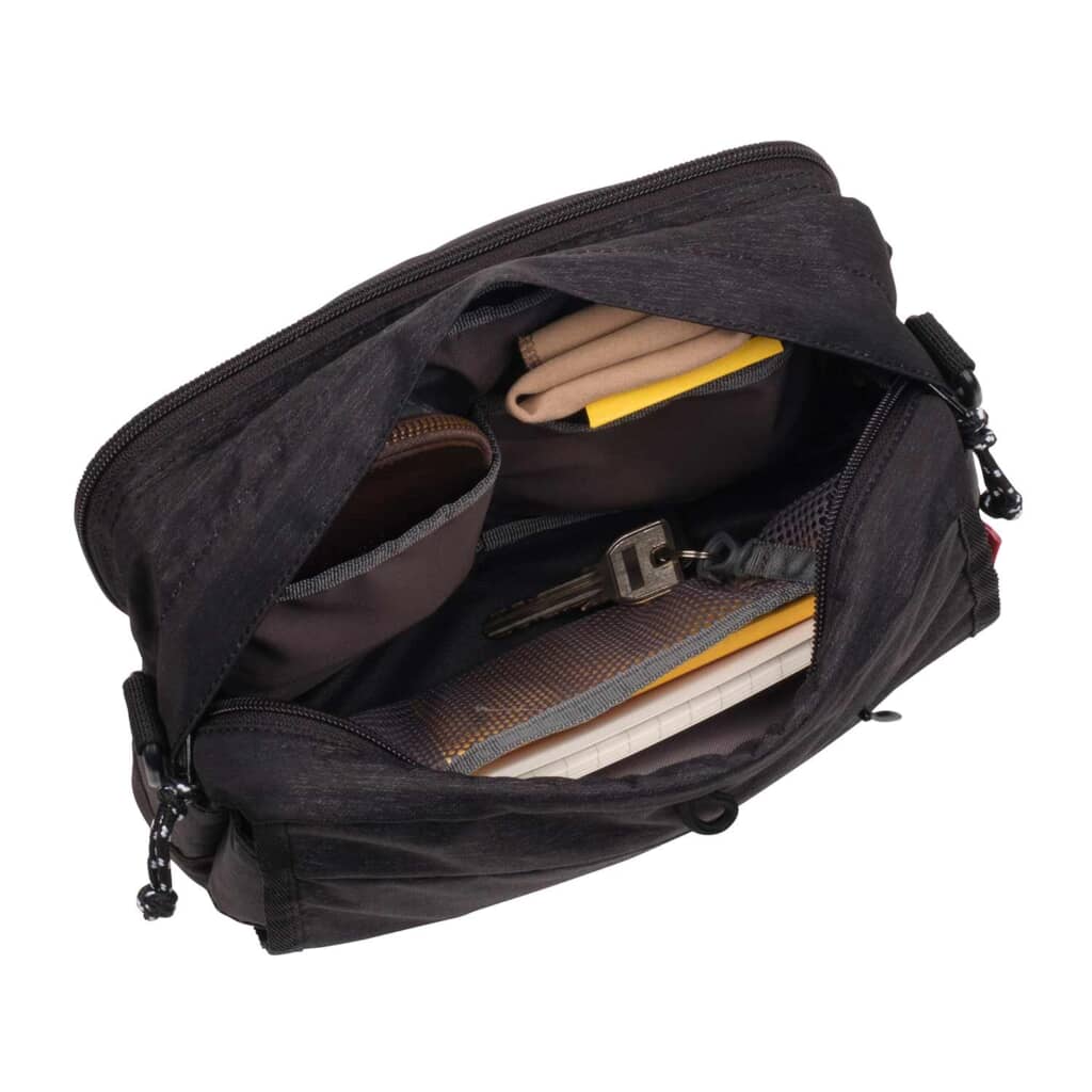 コンパクトでありながら、収納スペースが充実しているのも魅力。メインポケットの中には複数のオープンポケットがあり、細かな持ち物を散らかさずに収納できます。内側に付いているフックは鍵の取り付けにおすすめです。その他、フロントに二つ、バックに一つのファスナーポケットを装備。さらに、光を反射するリフレクターが、夜間の視認性を高めてくれます。