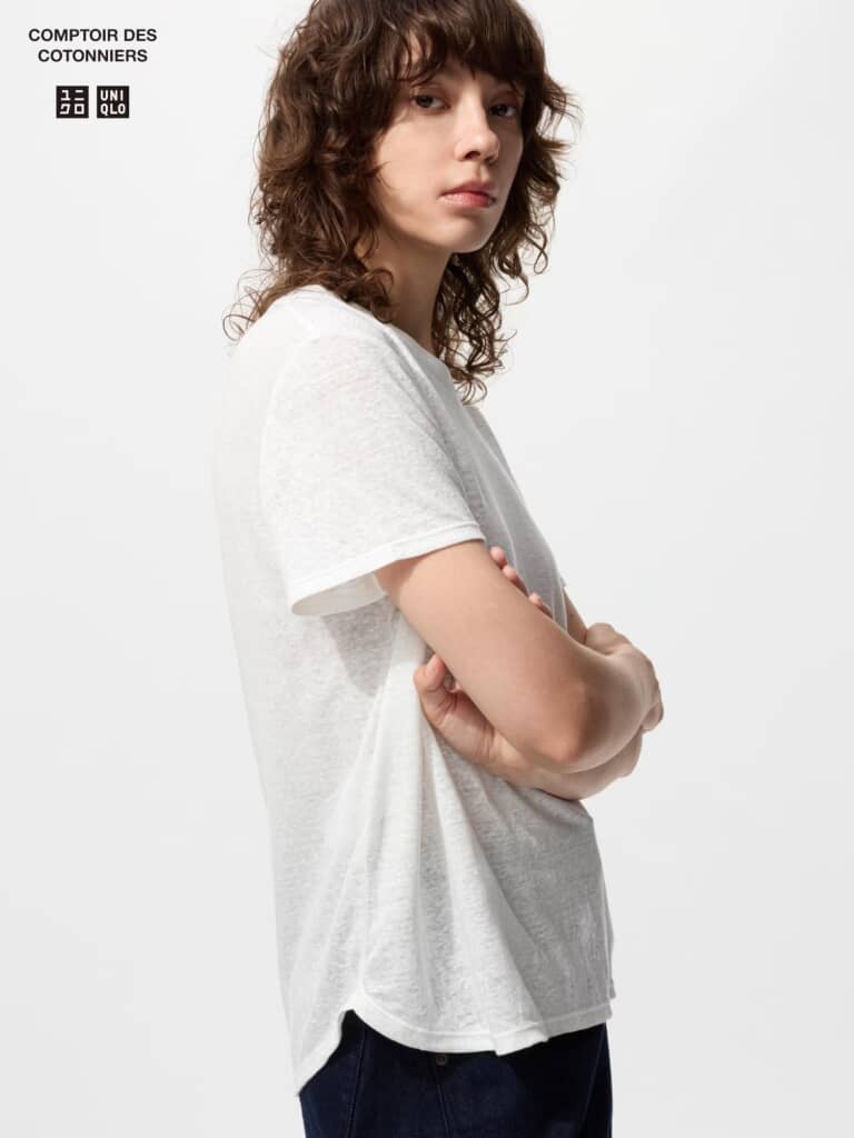 ユニクロの「リネンクルーネックT」は、身頃にリネン100%素材を使用した、ナチュラルな風合いとリネン特有の落ち感が楽しめるクルーネックTシャツ。襟部分にはリネンではなくフラットニットを採用し、スポーティでありながら洗練された印象を演出します。ベーシックなシルエットで着こなしやすく、1枚でも様になるラウンドヘムデザインも魅力。シックでありながらゆったりと着られる、タイムレスなデザインを取り入れた一着です。カラー展開が豊富で、価格は3990円。また2026年3月13日時点で、対象カラーのみ値下げ価格の2990円で販売されています。
