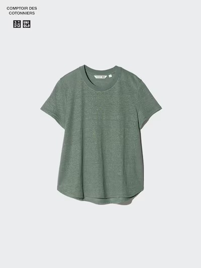 ユニクロから販売されている「リネンクルーネックT」が、1枚でもインナーでも使いやすく、さっぱりとした着心地で季節関係なく活躍してくれると高評価を集めています。