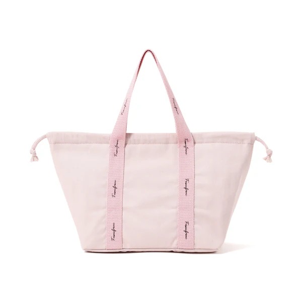 フランフランの「ロゴ 2WAY ランチバッグ」は、太めのロゴテープにロゴプリントが映えるランチバッグ。シンプルなデザインで、さまざまなランチボックスに合わせやすいのが魅力です。バッグとは別に持ちたいときはトートバッグとして、バッグの中に入れて使いたいときは巾着バッグとして使える2WAY仕様。また内側には保冷・保温に対応したアルミシート付きで、弁当箱や箸、小さめのステンレスボトルが入る使いやすいサイズ感です。カラーはピンク・アイボリー・グリーンの3種類、価格は2026年3月16日時点で半額の税込み1400円で販売されています。