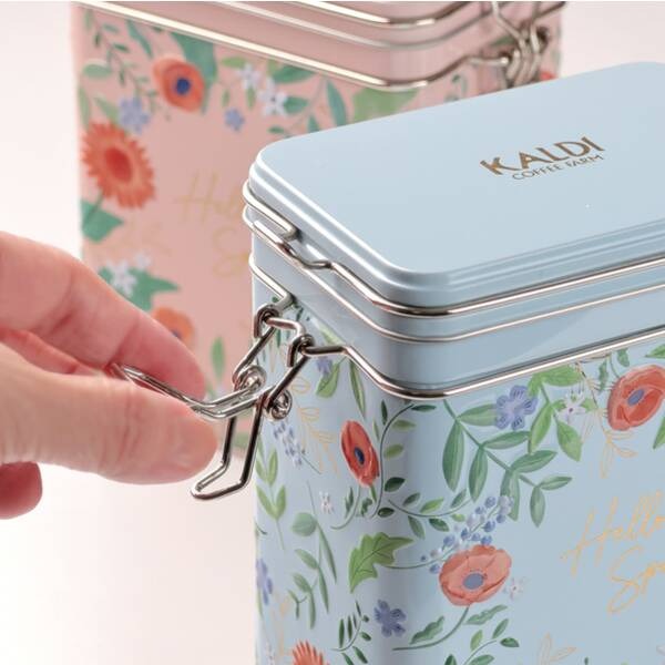 輸入食品とコーヒー豆の専門店「カルディコーヒーファーム(KALDI)」で販売されている“お菓子缶”が、春らしいデザインで紅茶などを保存するのに便利だと人気を集めています。