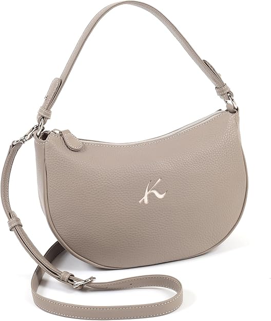 「2WAYハンドバッグ Y-1379」は、抜き型のKマークがポイントのハンドバッグ。キズを目立ちにくくするシュリンク加工を施した牛革を使っています。丸みを帯びたシルエットでエレガントになりすぎないため、キレイめスタイルはもちろんカジュアルなデイリー使いにもおすすめ。取り外し可能なショルダーベルト付きで、旅行・お出かけにもぴったりです。