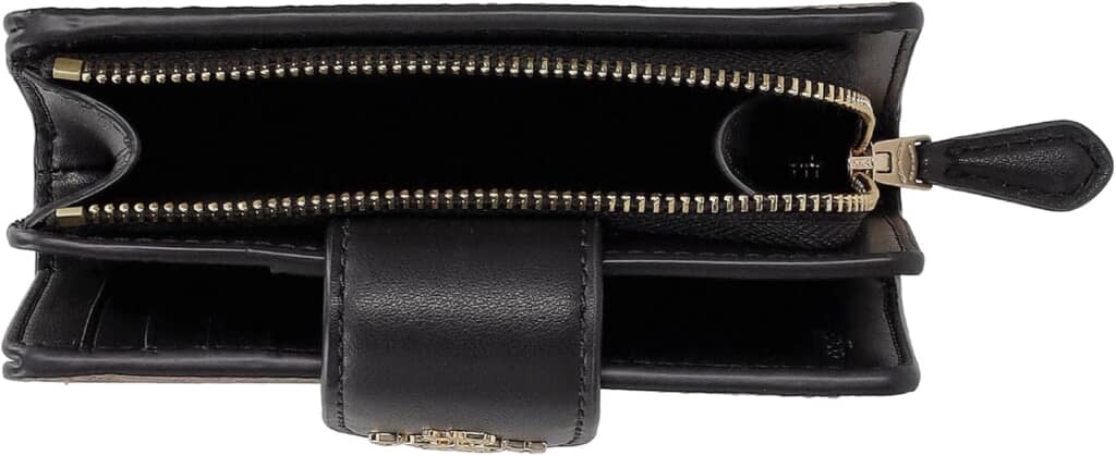 「ミディアムコーナー ジップウォレット シグネチャーキャンバス」は、Cマークがデザインされたシグネチャーキャンバス生地を使用した二つ折り財布です。丈夫で軽量・水や汚れに強いため、ガシガシ使えるのが魅力。ロゴパーツ付きのベルトがポイントになっています。サイズは縦8.5センチ・横13センチ・マチ1.5センチで、バッグに入れてもかさばらない大きさです。ベルトの反対側に配置された小銭入れは、L字のファスナータイプ。大きく開くので出し入れがスムーズです。7つのカードポケットに、ICカードなどを入れるのに便利な窓付きポケットを完備。札入れは深めの仕様で、チケット・領収書もすっきり収まります。
