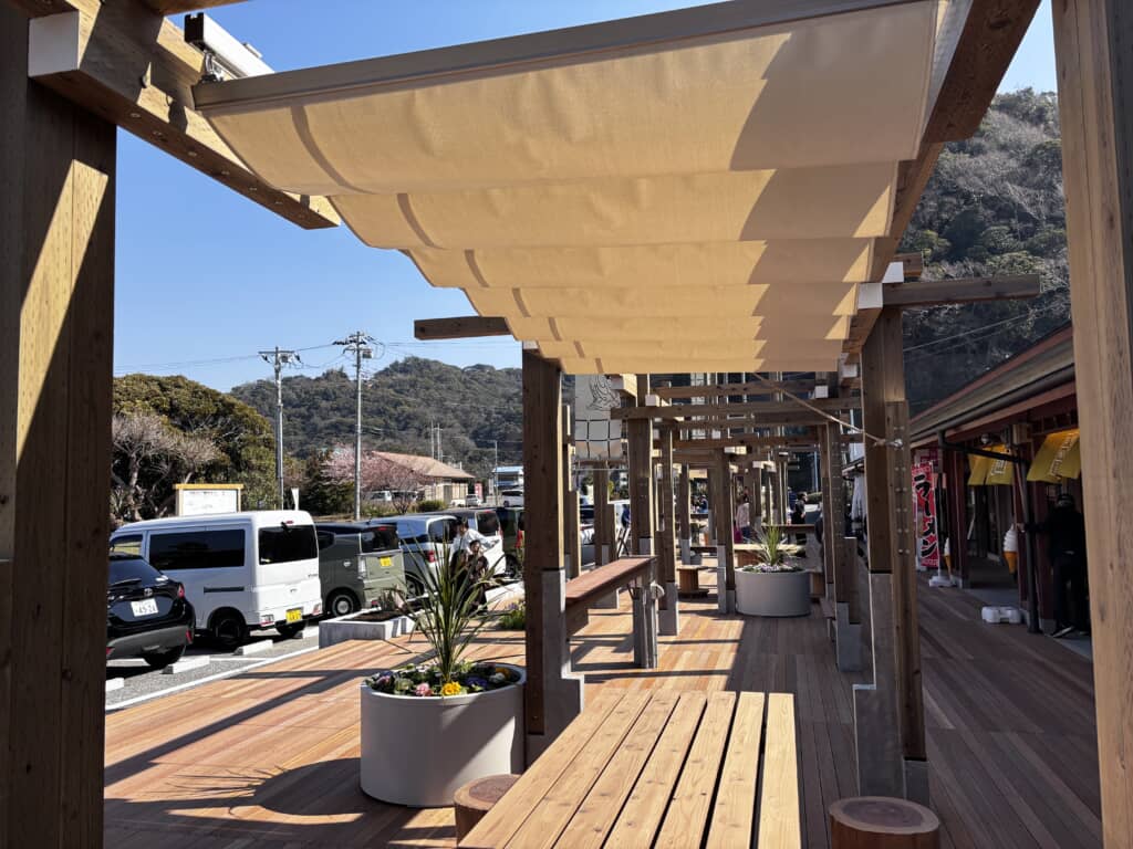 道の駅の最大の特徴は、東京湾に面したオーシャンビュー。天気の良い日は向かいの三浦半島や富士山も見える場所として人気で、特に夕日の美しさは絶景です。富津館山道路鋸南保田ICから車で5分という好アクセスで、都心からも日帰りで訪問可能。目玉となるのは2026年2月21日のリニューアルで新設された休憩スペースを備えた木造デッキ「やぐら茶屋」と、個性豊かな新テナントの数々です。