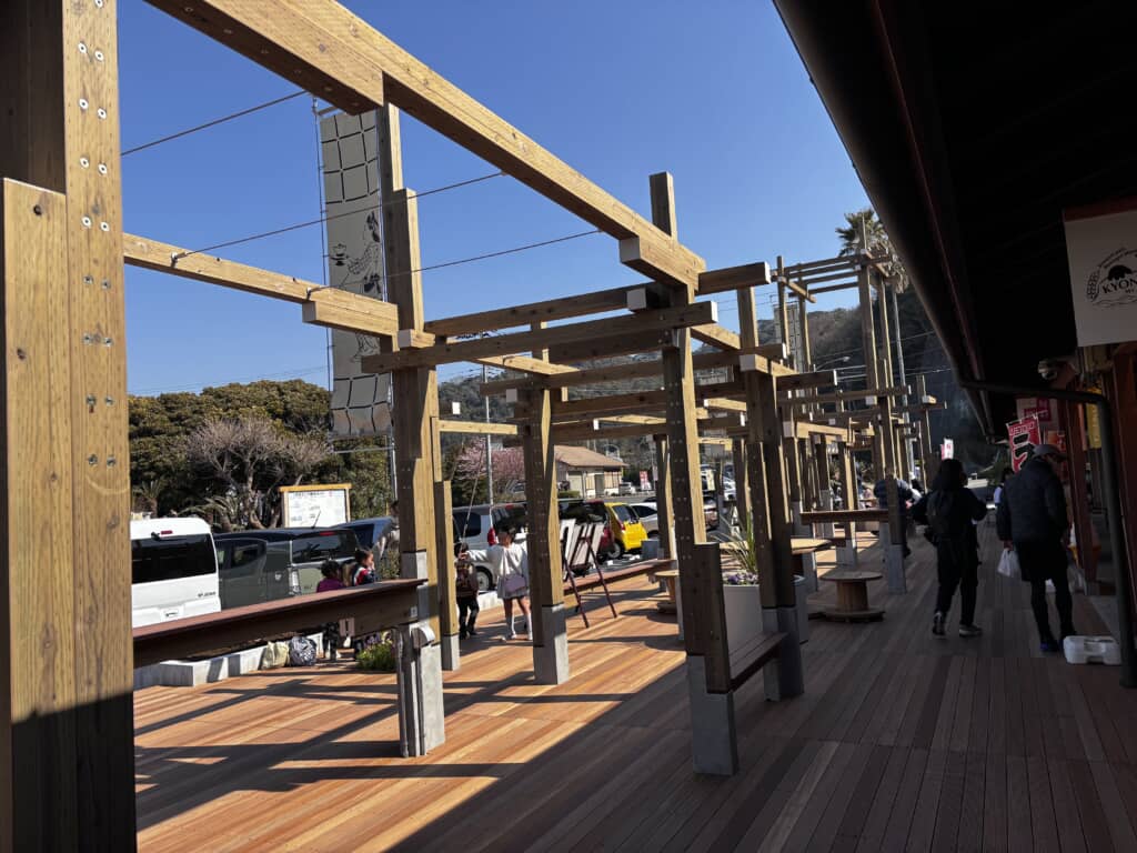 道の駅きょなんは、「やぐら茶屋」という新たなシンボルのもと、健康志向のMIKAERI BIJIN Cafe、クラフトビールの鋸南麦酒、ジビエ料理のあわ海月堂、地元の人から愛される直売所など、個性豊かなテナントが揃った魅力的なスポット。東京湾の絶景を眺めながら、ぬくもりのある空間を体験してみてはいかがでしょうか。