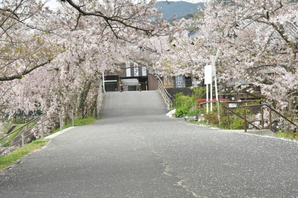 津市美杉町にある「三多気の桜」は、「日本さくら名所100選」や国の名勝に指定されているお花見の定番スポットです。国道368号から真福院の山門までの約1.5キロにわたり、約400本のヤマザクラが並木道を作っています。のどかな里山を背景に、棚田の水に美しいサクラが映り込んだ絶景を堪能できます。