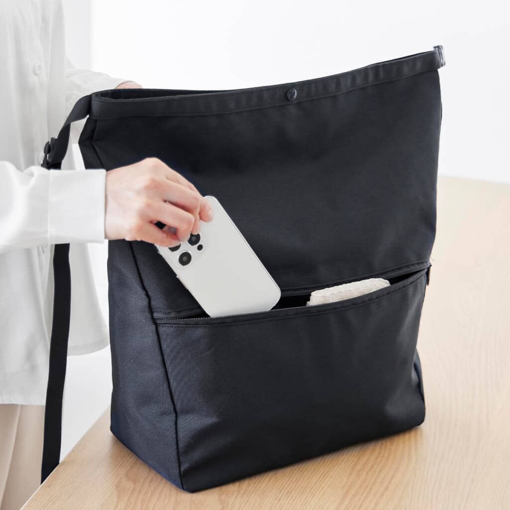 タワーの「量によって調節できる保冷&保温ショッピングエコバッグ」は、荷物の量に応じてサイズ調節ができる、使い勝手の良い保冷・保温エコバッグ。スナップボタンで簡単に容量を変えられるため、日々の買い物からお出かけまで幅広く活躍します。またコンパクトに折り畳めるので持ち運びにも便利で、急な買い物の際や荷物が増えた際などにも便利。ショルダーストラップは長さ調節が可能で、肩掛けと手提げの両方に対応しています。さらに外側にはファスナーポケットが付いており、スマホや鍵の収納にも◎。汚れた場合は洗濯機で洗えるため、お手入れも簡単です。カラーはライトグレーとブラックの2種類、価格は税込み2750円で販売されています。