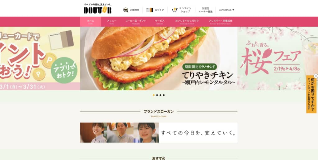 同率第2位の2つ目は、「ドトールコーヒーショップ」でした。1980年に出店を開始した「ドトールコーヒーショップ」は、2025年2月末時点で直営267店・加盟806店を展開。世界約20カ国からコーヒー豆を調達し、品質にこだわったコーヒーを提供しています。