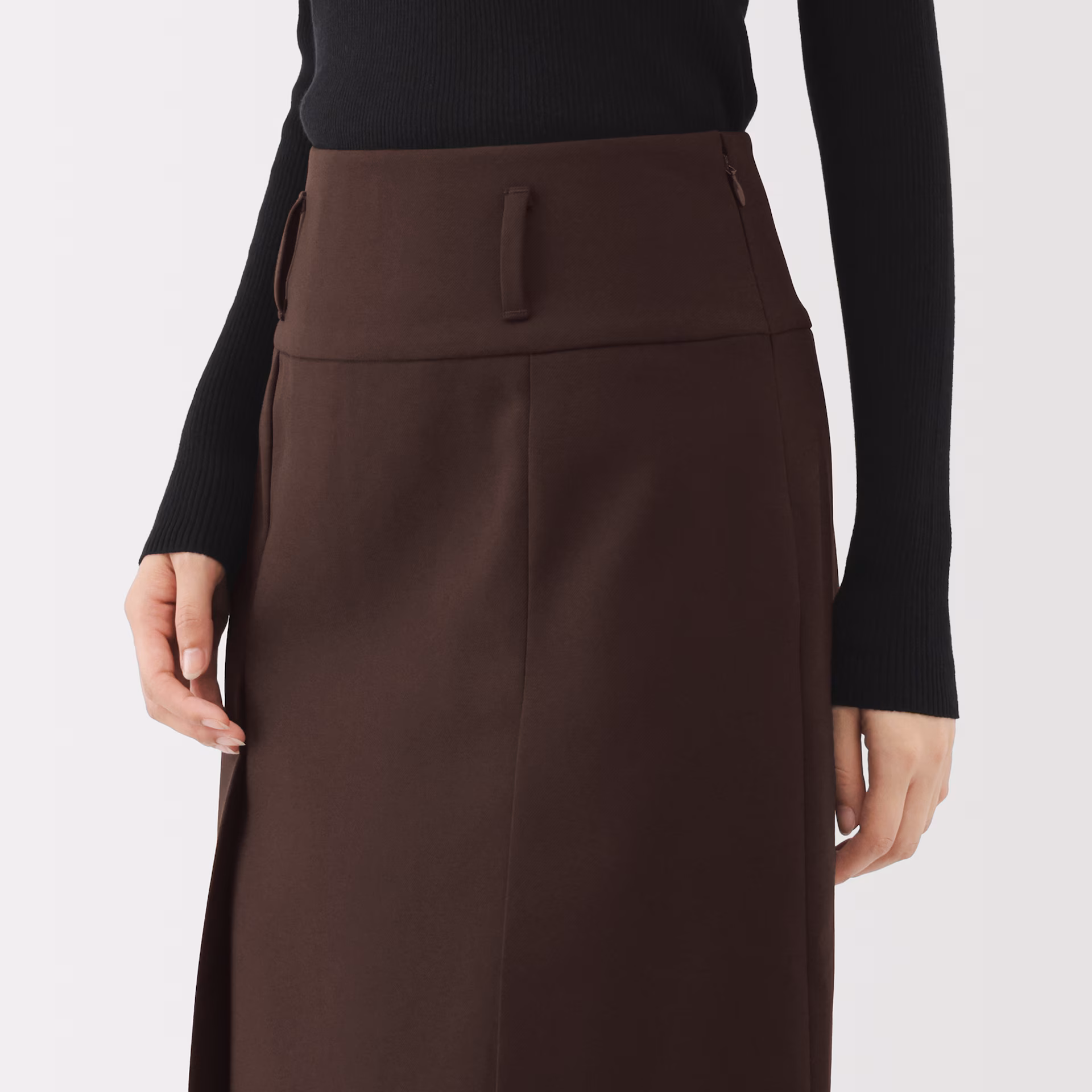 無印良品の「婦人 ユニフォーム素材で作ったタックスカート」は、さまざまな制服に用いられるハリ感のあるポリエステルのツイル生地で仕立てられたスカートです。一般的にアパレルウェアではあまり使われない素材を日常着としてデザインしており、個性のある生地感が特長。ウールのような質感と深みのある色合いながら手入れがしやすく、軽量かつ耐久性にも優れています。また、ポリエステル素材のためタックが取れにくく、きれいなシルエットを保ちやすいのもポイントです。