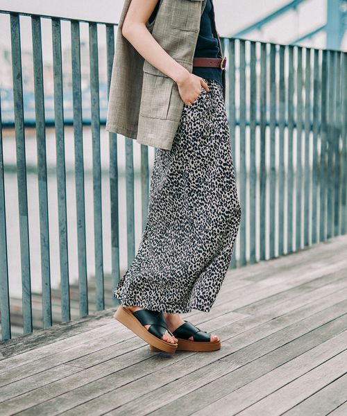 そんなニコアンドの「厚底トングサンダル」(4500円)は、毎年人気のマストバイサンダルとして紹介されている、履きやすさ重視の一足。トングサンダルならではの涼しげな抜け感がありつつ、カジュアルに寄りすぎない大人っぽさも足元にプラスしてくれるのがポイントです。デザインは全3色展開で、レオパード、ブラックNダークブラウンというラインアップ。ベーシックにまとめたい人はブラックN、抜け感のある大人カジュアルを作りたいならダークブラウン、アクセントが欲しいならレオパードと、好みによって選べそうですね。