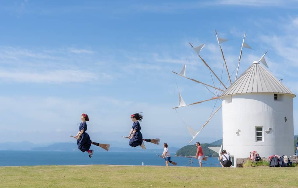 象徴的な存在となっているのが白いギリシャ風車で、フォトスポットとして高い人気を誇ります。また、映画「魔女の宅急便」をモチーフにした施設もあり、物語の世界観を楽しめる点も大きな魅力です。