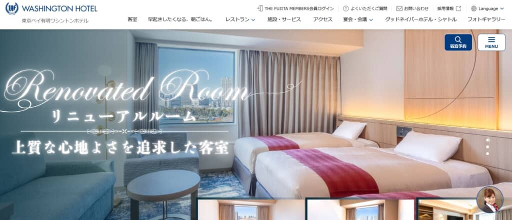 「東京ベイ有明ワシントンホテル」は、りんかい線の国際展示場駅から 徒歩約3分の場所にあるホテルです。ホテルスタッフが必要に応じてサポートしながら、「セルフチェックイン・アウト機」を使い、スピーディーによりスムーズにチェックインが可能。一階にあるレストラン「ジョージタウン」では、朝は和洋中朝食ビュッフェ、11時30分からはランチを提供しています。