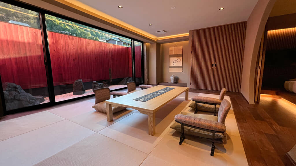 信楽焼の陶器風呂や、河津桜の木の床材など、落ち着きがありながらも個性豊かな部屋は、プライベートで特別な時間を過ごすのにピッタリ。食事にもこだわっており、伊豆産の素材を用いたオーガニック創作料理は安心・安全なだけでなく、新鮮で味わい深いものとなっています。