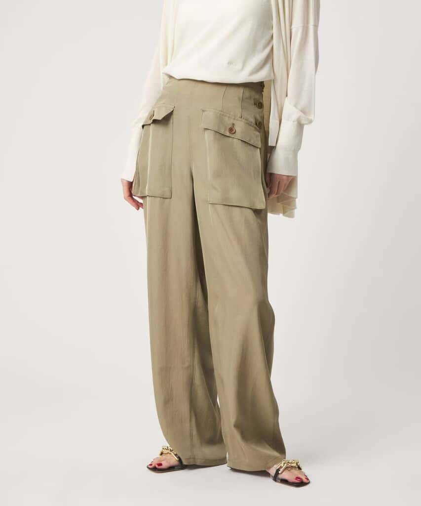 「<conte>フロントポケット カーゴパンツ」は、前面に施された立体的なフラップポケットが印象的なカーゴパンツ。無骨なデザインながら光沢感のある素材を使用することで、きれいめなアイテムとも合わせやすく仕上げられています。ウエスト後ろはゴム仕様でリラックスした履き心地を実現し、さらにアジャストボタンによりサイズの微調整も可能。アセテートツイル素材特有のつややかな表情とドレープ感、ビンテージライクな風合いも魅力の一枚です。価格は税込み2万9700円で販売されており、2026年3月27日時点で予約販売が開始されています。