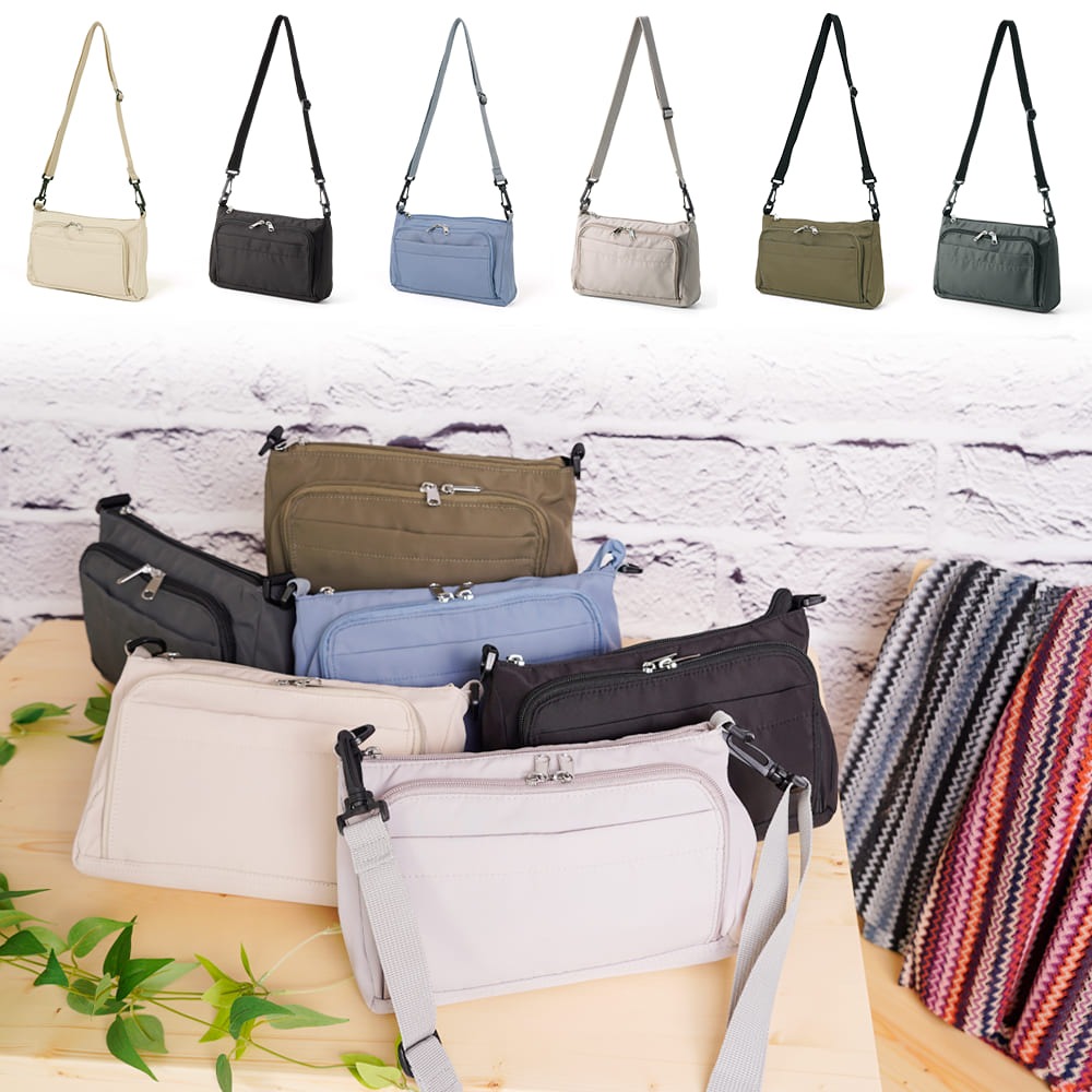 第2位は「高撥水Dayライフショルダーポーチ」でした。シンプルで使いやすいデザインに、お財布機能を備えた便利なショルダーポーチです。はっ水加工が施されているため、多少の雨でもサッと拭くだけでお手入れが可能。マチ付きのメイン収納は必要な荷物をしっかり収納でき、オープンポケットやキーフックで小物整理も快適です。前面のダブルファスナーポケットにはカードポケットやペンループを備え、お財布代わりにも活躍。ショルダーベルトは取り外し・調節が可能で、ポーチとしても使えるため、シーンに合わせて幅広く活用できます。カラーは6種類、価格は1780円で販売されています。