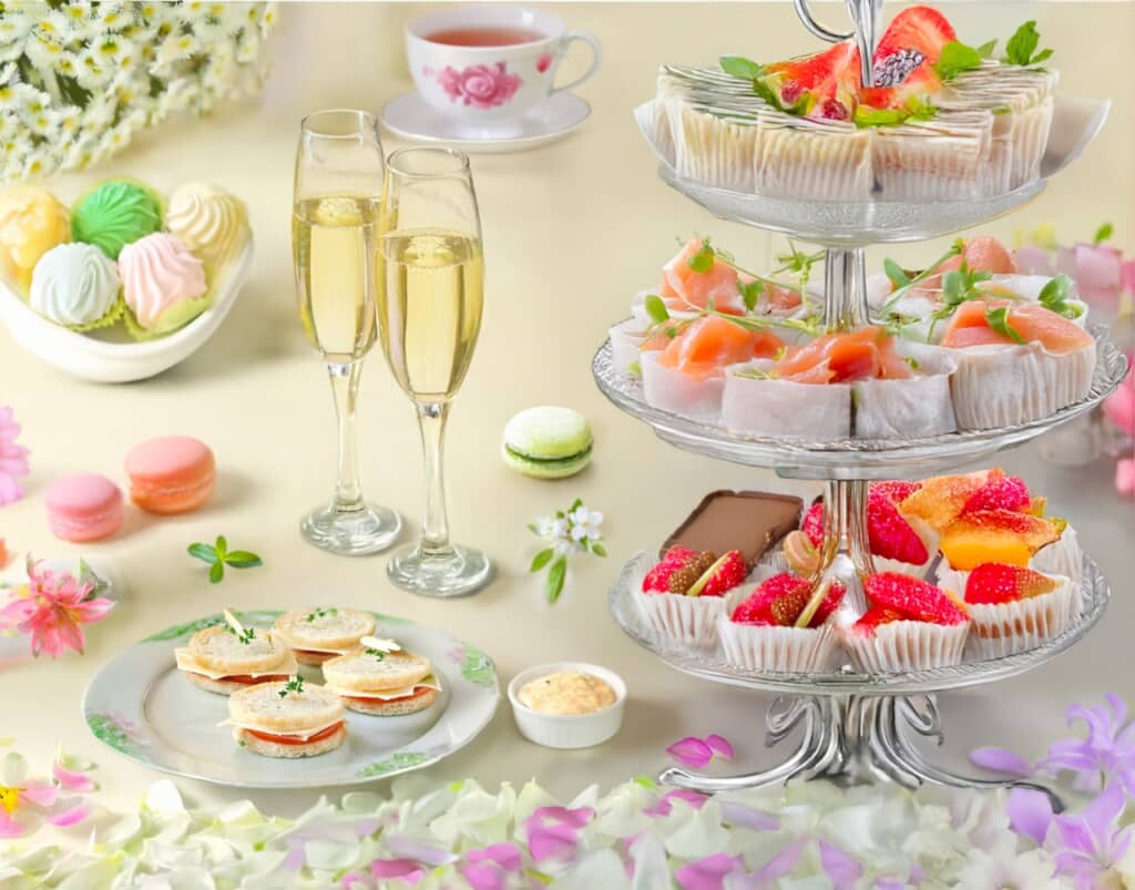 「春風と桜香る Afternoon Tea」は旬の食材を使った料理に、桜ソースの杏仁豆腐をはじめとしたスイーツや、桜風味のスコーンなども用意。また、フリードリンクでは、ノンアルコールスパークリングやフランスの紅茶ブランド「Nina’s」など30種以上をラインアップしています。和モダンな空間で優雅な時間を堪能できることも、口コミの評価を上げた理由かもしれませんね。