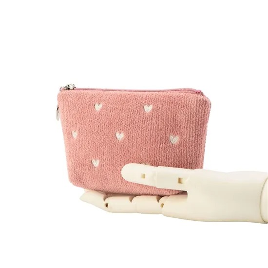 フェイラーの人気ライン「ラブラリーハート」から展開されている舟型ポーチSは、全面にあしらわれたハート柄が目を引くキュートなデザインが特徴です。フェイラーならではのシュニール織によって表現されたやわらかな質感と発色の美しさが魅力で、見た目のかわいらしさと高級感を両立しています。ファスナー部分にはブランドらしいアクセントが施されており、細部までこだわりが感じられる仕上がりです。