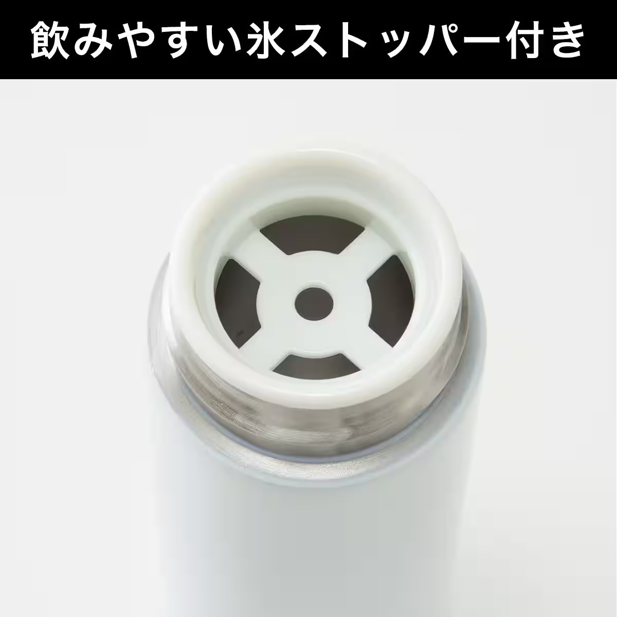 水洗いが簡単な仕様になっており、飲みやすい氷ストッパーが付いているのもうれしいポイント。保温効力は56度以上が6時間持続、26度以上が24時間持続。保冷効力は11度以下が6時間持続するといいます。コンパクトなだけでなく機能面にも優れたアイテムです。