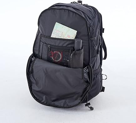 メインコンパートメントには、最大16インチのノートパソコンの収納が可能。そのフロント側にあるポケットは、複数の内ポケットがあり小物を整理しやすいスペースです。さらに、縦にファスナーが入ったフロントポケットの他、サイドポケットやチェストポケットがあります。ショルダーハーネスはハンドレストが付いているのが特徴。親指を掛けて引っ張ると、肩への負担や腕の疲れを軽減できます。そのため、重たい荷物を入れて長時間歩く場合にも、楽に背負えそうですね。