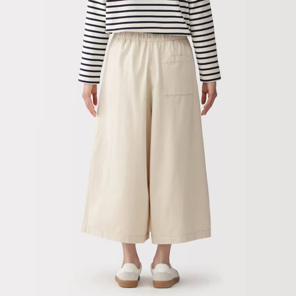 無印良品から新商品として販売開始されている「婦人 カポック混 ライトツイルスカートパンツ」が、軽くてほどよい薄さの生地感で春夏に履きやすく、スカートパンツなので足さばきもいいと高評価を集めています。