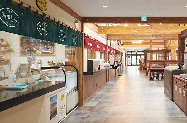施設内の物産ホールでは、新鮮な地元野菜や加工品、銘菓、地酒、工芸品など、遠野ならではの商品が豊富にそろいます。フードコーナーでは、地元食材を使った料理や郷土料理が楽しめるほか、名物のバケツジンギスカンやそば、ジェラートなども人気です。