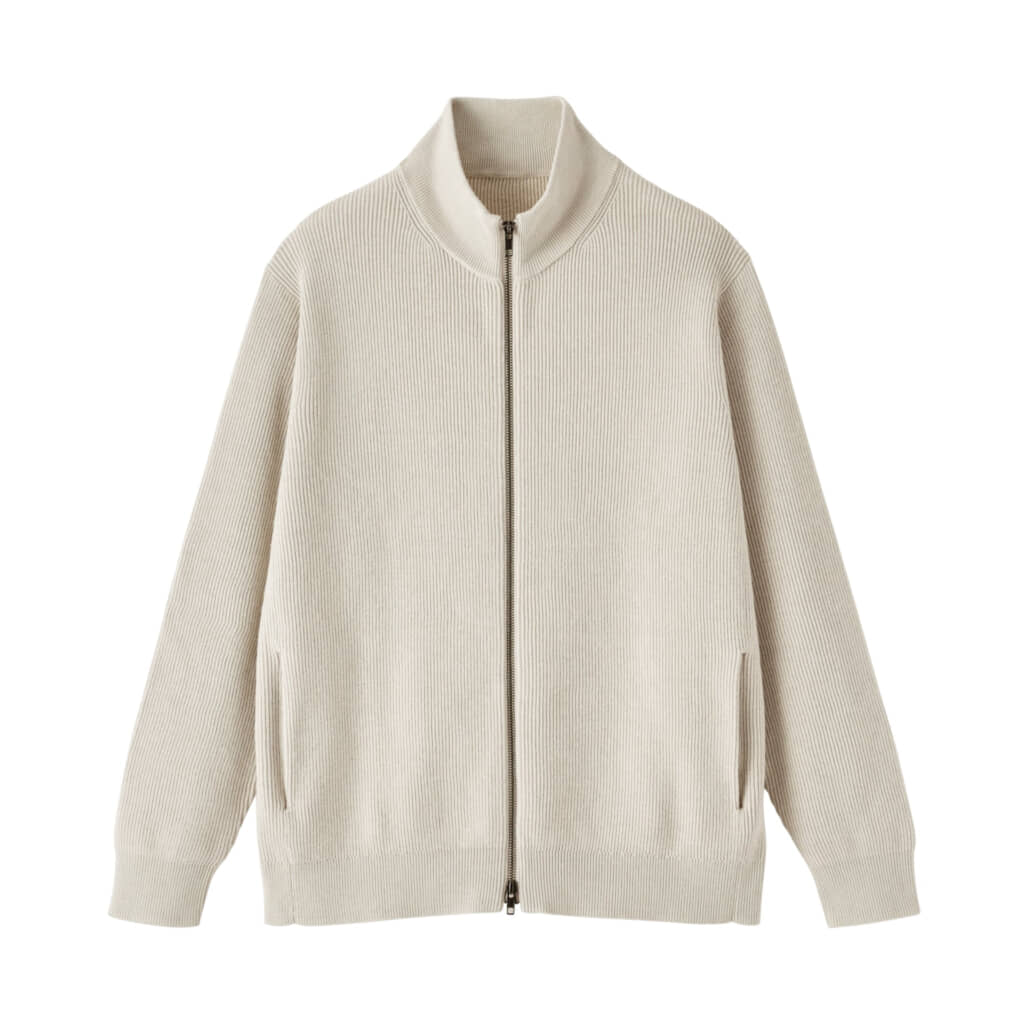 第9位:紳士 洗える畦編みフルジップカーディガン