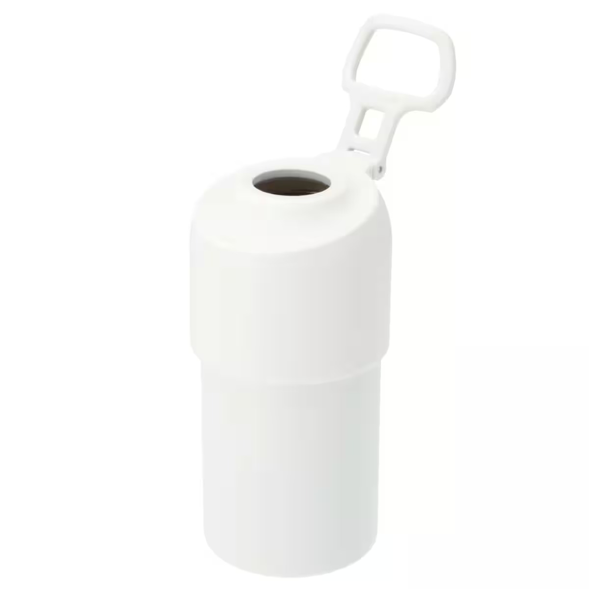 500~650ミリリットルに対応しており、幅広いサイズのペットボトルで使用可能(※形状によっては使用できない場合あり)。輪の取っ手が付いているため持ちやすく、取っ手はたためるのでバッグにしまうときにも邪魔になりません。カラーはホワイト、ブラックを展開しています。気温が上がってくるこれからの季節に活躍するアイテムです。