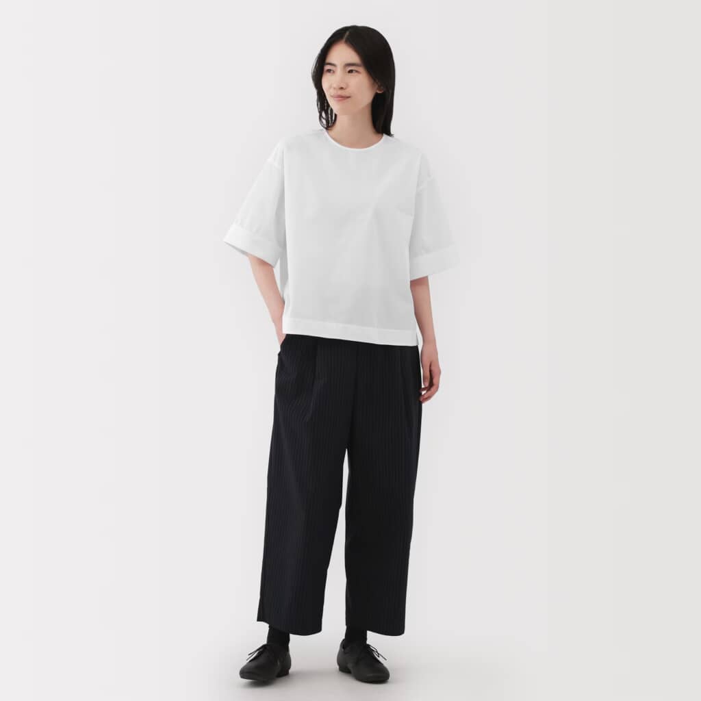 無印良品公式サイトには、「ゆったりとした作りで着やすいです。二の腕が隠せるところも嬉しいです」「デニムにこちらの商品を着て、早く出かけたいです」「Tシャツよりキチンと感があり、それでいて気楽に着られる」「袖が肘まであるのと、ギャザーなどないシンプルな形が大変気に入りました。骨格ストレートにはこんな形がありがたいです」「スッキリ着痩せして見えます」「1枚で着る時下着が透けないのでとても良いです」などの声が購入者から上がっていました。
