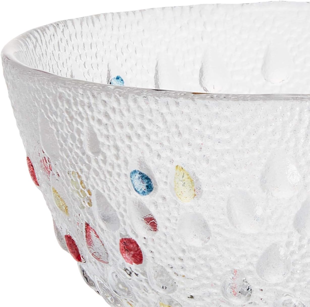 そんなDANSK(ダンスク)の「バブルコンフェッティ フルーツボウル」は、クリアなガラスベースに赤・青・黄などカラフルなドット柄を散りばめた「バブルコンフェッティ」シリーズのアイテム。泡のようなドット柄部分は、職人がハンドペイントで仕上げています。直径13センチ・高さ7センチで、フルーツ・アイスといったデザートを盛りつけるのにちょうどいい大きさ。チョコレート・キャンディなどのお菓子を入れるのもおすすめです。表面にはポコポコとした凹凸があるため滑りにくく、ほどよい厚みがあるので安心して使用できます。