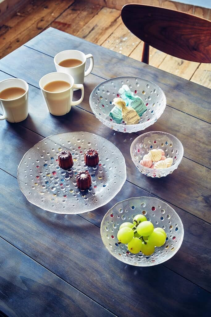 DANSK(ダンスク)の「ガラスボウル」が人気を集めています。透け感のあるガラス製のボウルに、カラフルなドット柄をハンドペイントで施したアイテム。プレゼントにもおすすめです。