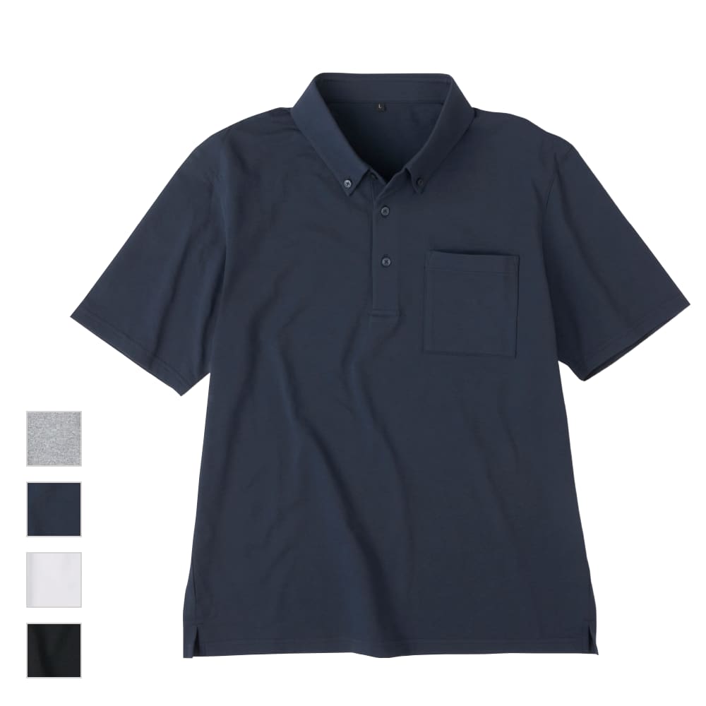 デザイン面では、左胸ポケット付きで実用性をプラス。さらにボタンダウン仕様になっているため、一般的なポロシャツよりもきちんと感があり、カジュアルにもワークにもなじみやすそうです。