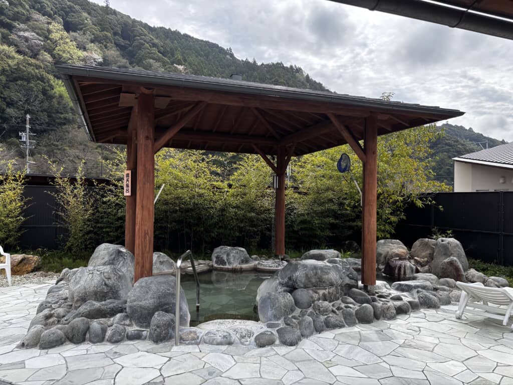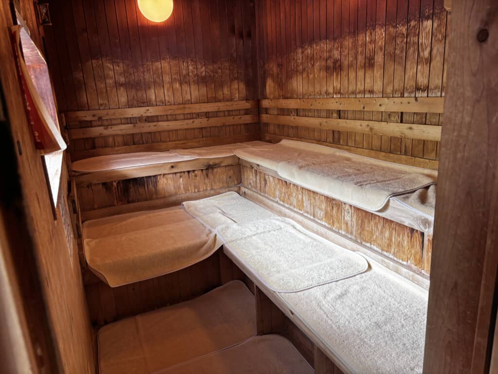 ガラス張りの天窓から瀬戸谷の光が差し込む開放的な大浴場、全身に細かな泡がまとわりつく炭酸泉、そして露天風呂のすぐ隣に設置されたレトロな雰囲気の屋外サウナ小屋と水風呂。サウナで芯まで蒸され、水風呂でクールダウンし、木製の寝床に横たわれば目の前には山の稜線が広がります。「サウナ、水風呂、山を眺めながらの外気浴、この流れが最高すぎてもう動きたくない」という声が続出するほど、大自然と一体になれる贅沢な時間がここにはあります。
