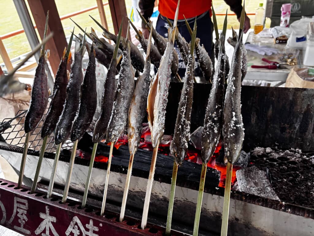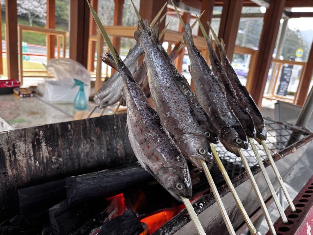 日曜日限定でヤマメの塩焼きも販売しています。