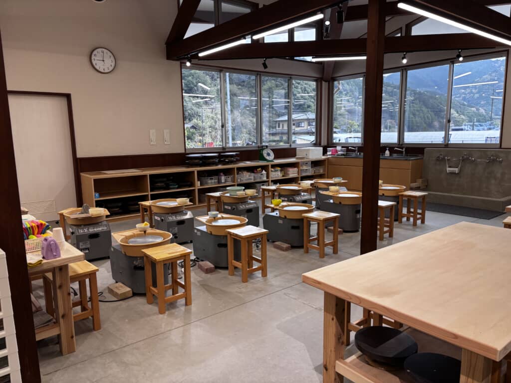 そしてもうひとつ忘れてはならないのが、東京藝術大学美術学部工芸科陶芸研究室・三上亮教授の監修のもとに整備された陶芸センターです。ここでは陶芸を自ら作るろくろ体験や今後はガラスの工芸品が体験できる施設です。こちらは年齢問わず夢中になれると評判です。温泉で体をほぐし、土をこねて心を解放し、カフェで瀬戸谷の恵みを味わう。この一連の流れこそが、ゆとりえせとやが提案する新しい「道の駅の過ごし方」です。ぜひ一度、瀬戸谷の山あいへ足を運んでみてはいかがでしょうか。