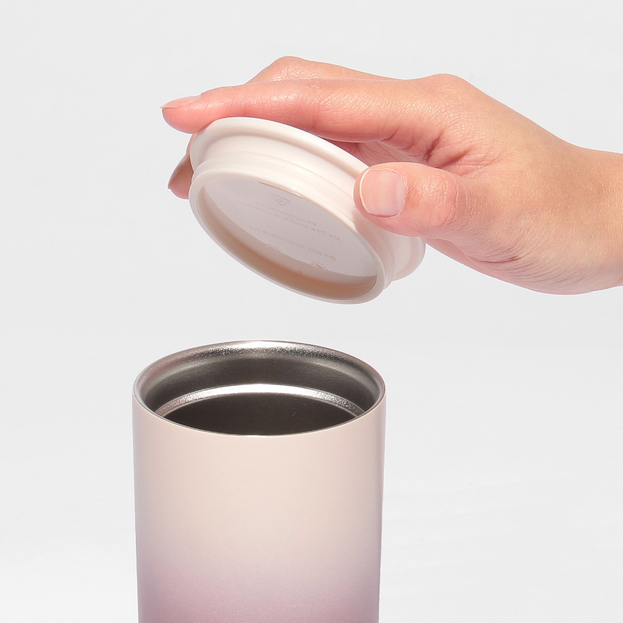 公式サイトでは、「ドライブが素敵に。車のドリンクホルダーに安心して入れられる細さ。フタがあるから車が揺れてもこぼれにくい。そのフタは付けたままでも飲めるしがぶがぶ飲みたいときは回さずに済むので開けやすい。しかも色もデザインも素敵!底がコルクになっているのもテーブルに置いた時にコンと音が響かないのもポイント高いです。求めていたものが全て揃っていたので即買いです」「落ち着いた、でも今までにないモーヴピンクが素敵でした。持ち手付きのタイプと迷いましたがスッキリしたデザインを選んで正解でした」といった声が寄せられています。