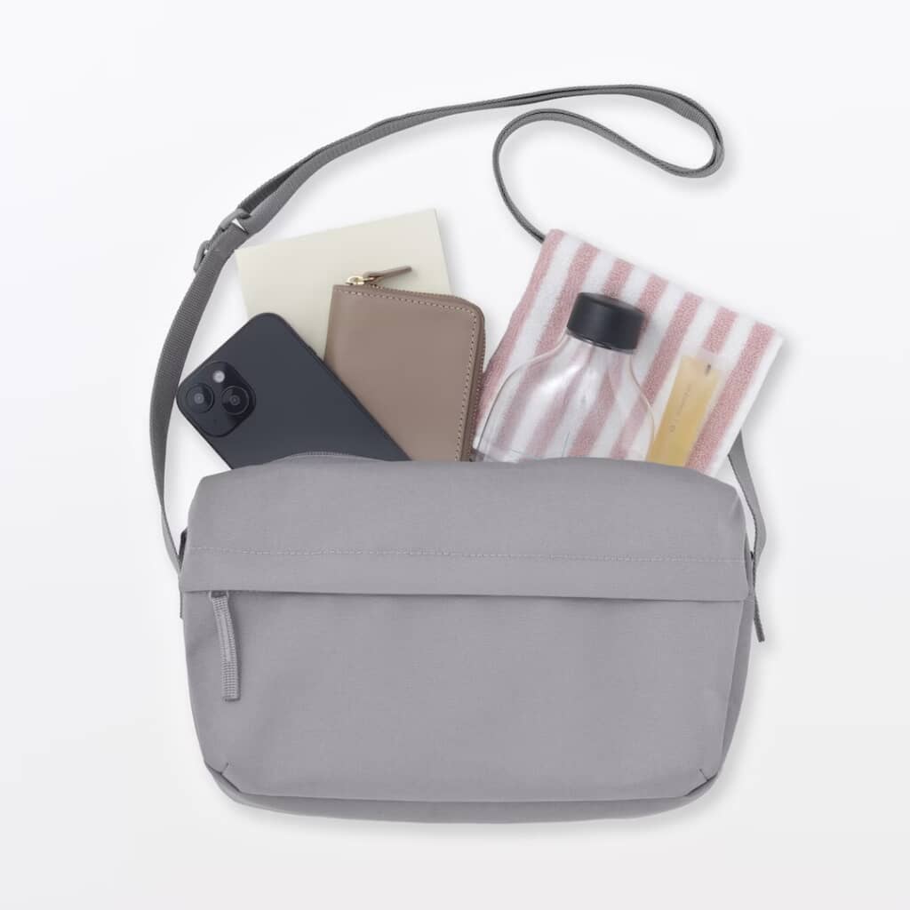 無印良品から販売されている「撥水 再生ポリエステル 背面ポケット付き ショルダーバッグ」が、絶妙なサイズ感なのに収納力が高く、他のバッグを使わなくなる人もいるほど高評価を集めています。