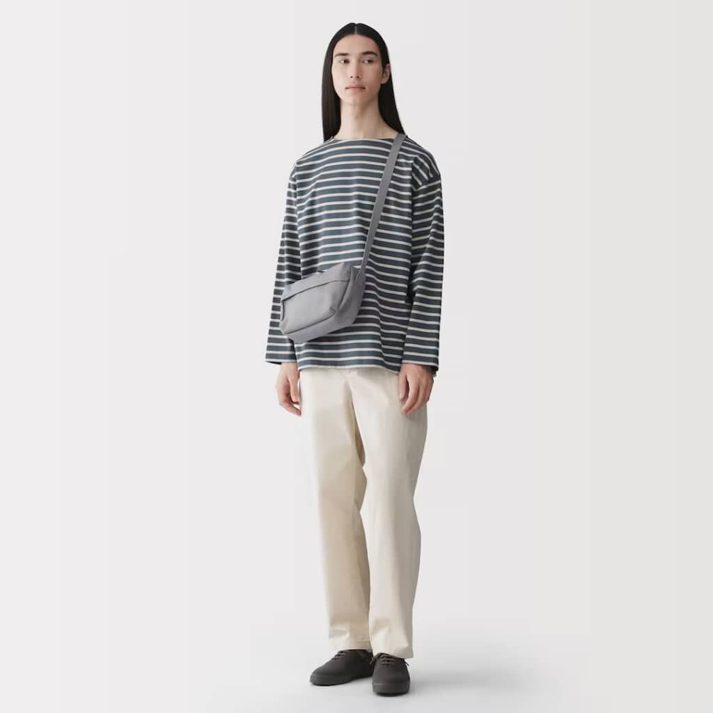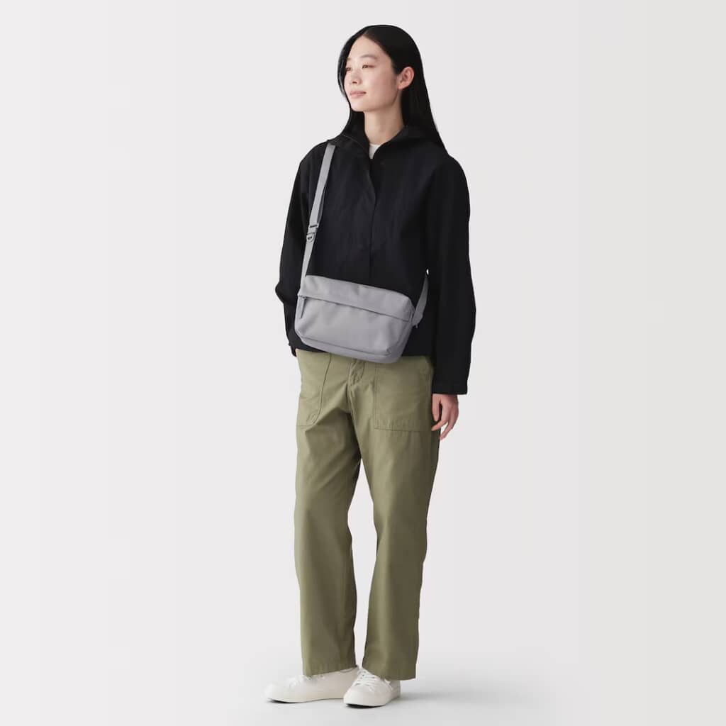 無印良品の「撥水 再生ポリエステル 背面ポケット付き ショルダーバッグ」は、収納力と機能性を兼ね備えたショルダーバッグ。背面には便利なミニポケットを備え、貴重品の収納にも役立ちます。ベルト部分のDカンには小物を取り付けることができ、使い勝手の良さが魅力。再生素材を使用し一部にはっ水加工を施しているため、日常使いからレジャーまで幅広く活躍します。コンパクトながら折り畳み傘やペットボトルも収納可能で、ワンマイルバッグとしてもおすすめ。カラーは7種類(スモーキーピンクは4月中旬発売予定)、価格は税込み1990円で販売されています。