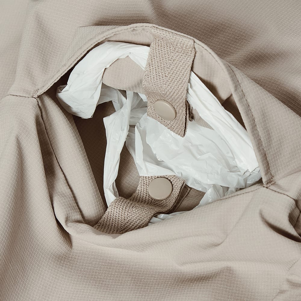 ボックスシルエットで重ね着しやすく、幅広いコーデになじむデザインもポイント。ブルゾンの内側ティッシュポケットを備え、使用済みティッシュを処理しやすいようポケット内にゴミ袋を固定できる工夫も施されています。
