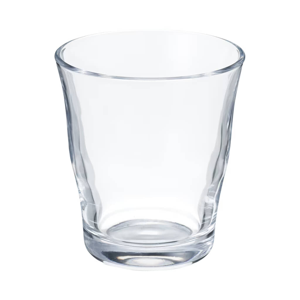 余計な装飾を省いたミニマルなデザインで、どんな食卓にも自然になじみ、飲み物を選ばず使える汎用性の高さが特徴。容量は約350mlで、重量は約320g。すこし大きめながら取り回しやすいサイズ感です。素材にはソーダガラスを使用しており、透明感がありつつも軽すぎず、扱いやすいバランスに仕上がっています。食洗機にも対応しているため、毎日の手入れがしやすいのも実用的です。
