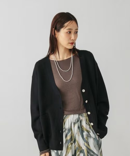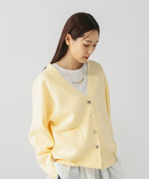 カラーバリエーションも豊富で、淡いイエローやブルー系のカラーも展開されており、季節感のある装いに取り入れやすいのも魅力です。1枚で着るのはもちろん、羽織りとしても使いやすく、気温差のある時期に活躍しやすいカーディガンです。定価は4490円ですが、50%オフの2245円で販売されています(2026年4月10日時点)。