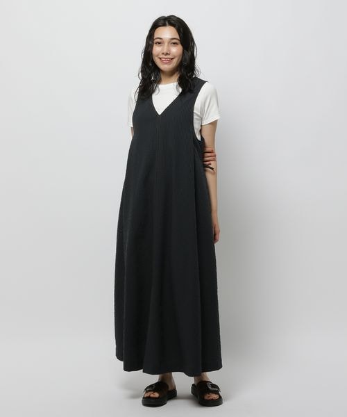 気温の上がる季節に、軽やかに着られて重ね着も楽しめるワンピースを探しているなら、niko and …の「ポコポコサマードレス」がおすすめです。表面に凹凸のある生地と、広がりすぎないシルエットで、シンプルなトップスに重ねるだけでも季節感のある着こなしに仕上がりそうです。