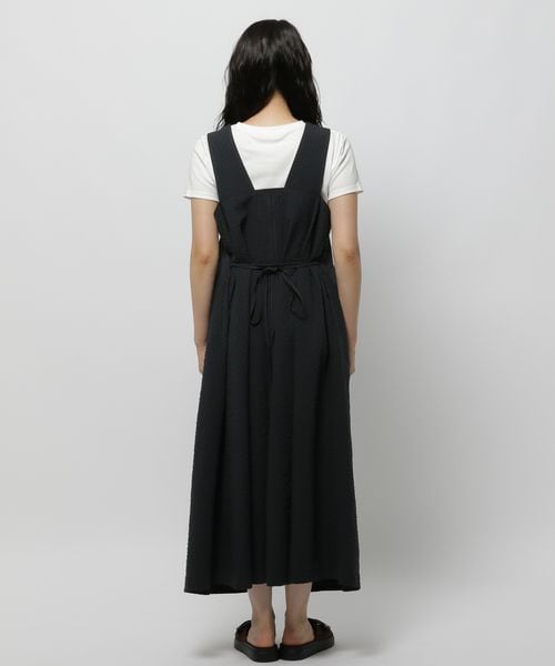 そんなニコアンドの「ポコポコサマードレス」は、表面に凹凸のあるポコポコとした生地が特徴のワンピースです。さらっとした肌触りのポリエステル素材を使用し、お手入れのしやすさにも配慮されています。シルエットは自然に広がるAラインで、サイドに入ったタックがウエスト周りをすっきりと見せてくれるデザイン。背面の紐は取り外しが可能で、結び方を変えることで印象に変化をつけられるのもポイントです。