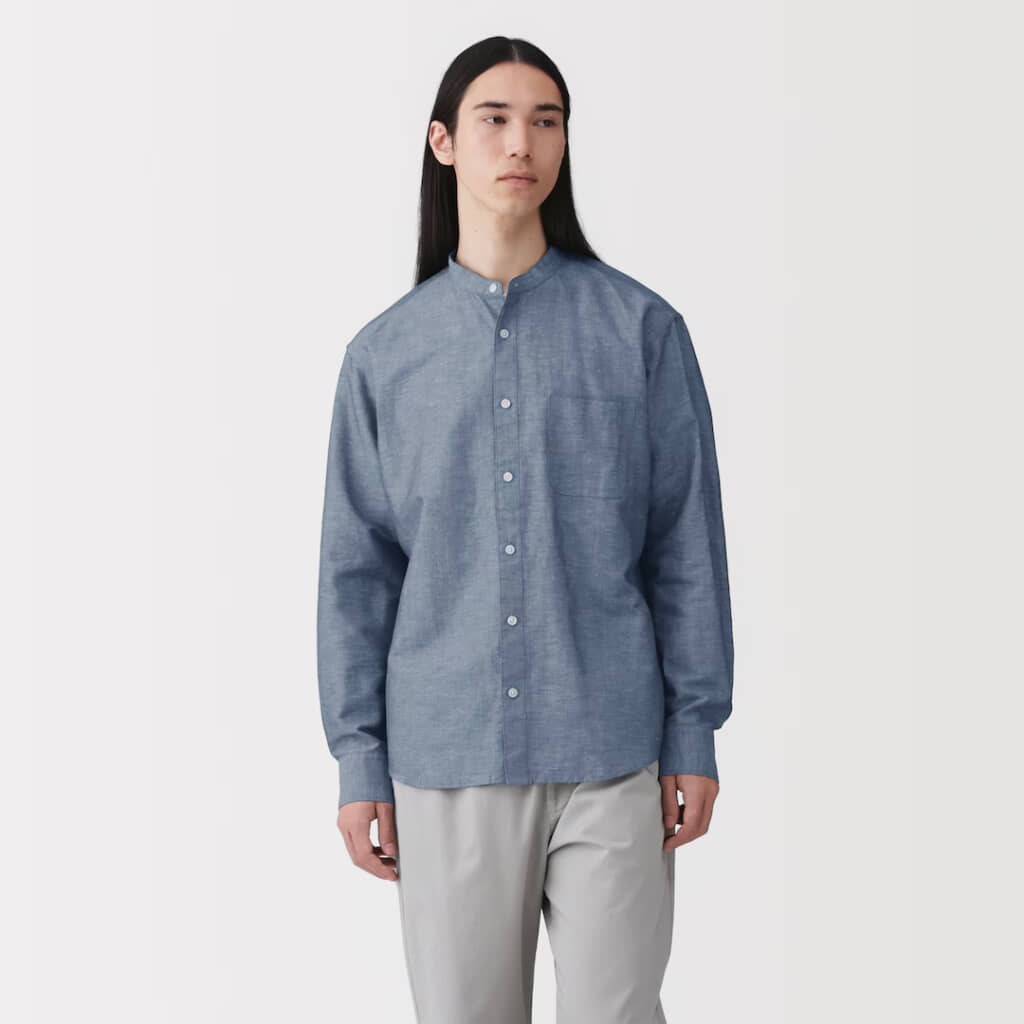 無印良品の「紳士 ヘンプコットンスタンドカラー長袖シャツ」とは