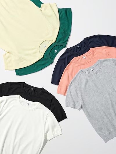 そんなユニクロの「UVカットクルーネックセーター/ウォッシャブル」(1990円)は、Tシャツ感覚で着られる、すっきりとしたシルエットのさわやかな半袖クルーネックセーター。洗練されたデザインで、これ1枚でさらりとコーディネートが決まります。