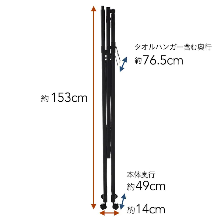 「ロング丈も掛けられる折りたたみランドリーラック」