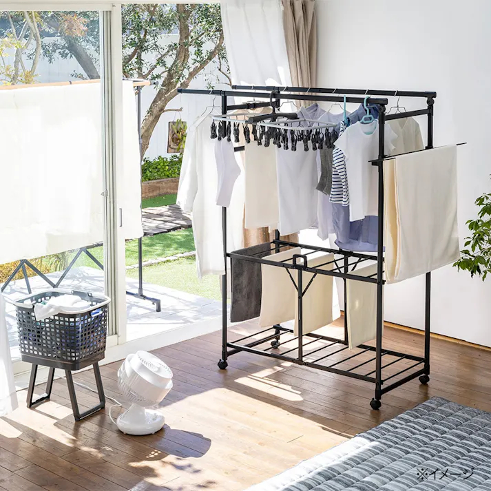 - 「ロング丈も掛けられる折りたたみランドリーラック」